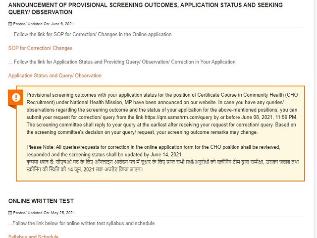 National Health Mission, Madhya Pradesh (NHM MP) has released a notice regarding the exam date and admit card for the post of Community Health Officer on sams.co.in. Check Details Here